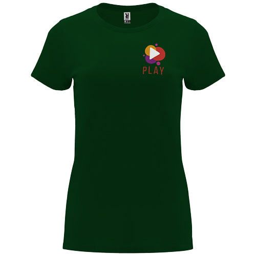 Dámské tričko s krátkým rukávem přiléhavého střihu. Žebrovaný výstřih ke krku. Zpevněné skryté švy na průkrčníku. Sundávací štítek.