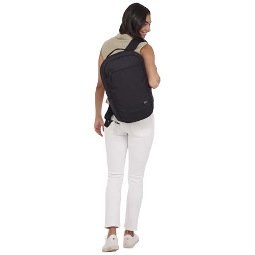 Batoh na 15,6" notebook Case Logic Invigo je jednoduchý a vkusný batoh vyrobený z recyklovaných materiálů s promyšlenými organizačními funkcemi. Je vyrobena ze 100% recyklovaného polyesteru 600D a podšívky z polyesteru 150D. Polstrovaná přihrádka na notebook chrání 15,6'' notebook a pouzdro na tablet pojme 12,9'' tablet. Uvnitř batohu jsou kapsy na drobné příslušenství a síťovaná kapsa na zip, která poskytuje další bezpečné uložení drobností, jako jsou klíče. Na vnější straně batohu je skrytá bezpečnostní kapsa na zadní desce, která uchovává důležité věci, jako je cestovní pas nebo peněženka skryté a přesto po ruce. Přední kapsa umožňuje rychlé uložení věcí na cestách a 2 boční kapsy jsou vhodné na láhve s vodou nebo deštník. Batoh je také vybaven provléknutým popruhem pro zavazadlo k připevnění tašky k cestovnímu zavazadlu pro snadné cestování.