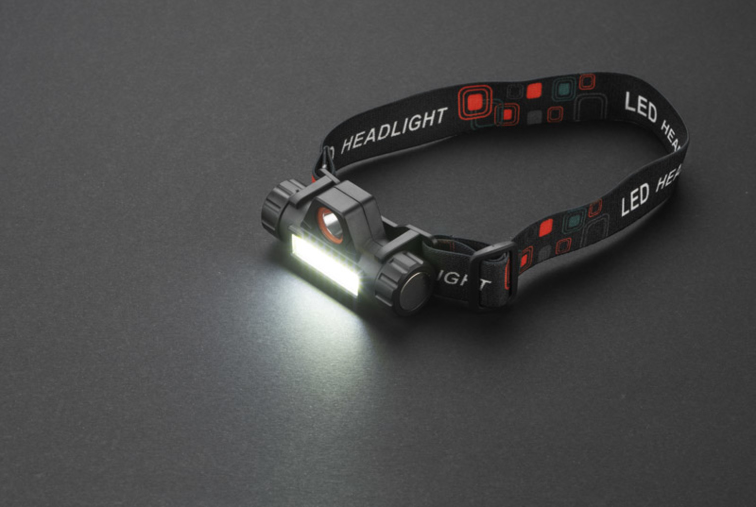 Svítilna na čele FRENTE je skvělá reklamní produkt. Kromě lamp LED a COB obsahuje produkt také vestavěnou baterii nabitou pomocí kabelu micro USB, který je součástí sady. Svítlinu lze oddělit od držáku a lze ji proto použít jako ruční svítlinu. Integrovaný magnet umožňuje připevnění na kovové povrchy. Svítilna: 3W, kapacita baterie 1200 mAh.