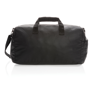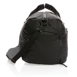Mimořádně stylová víkendová taška v celočerném provedení z PU. Prostorný hlavní oddíl poskytuje dostatek místa pro krátký výlět či sport. Vhodná palubní velikost. PVC free.