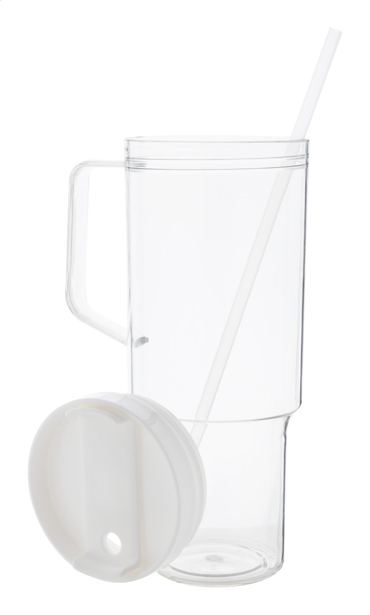 Jednostěnný cestovní hrnek z RPET s PP víčkem na pití a brčkem v odpovídající barvě. 1200 ml.