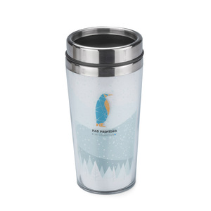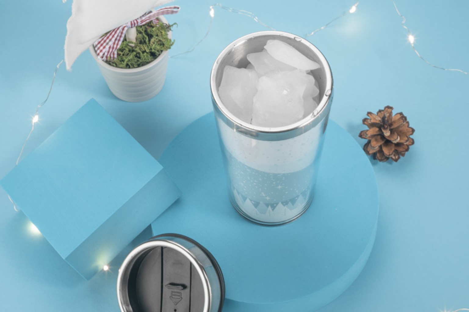 Elegantní termoska s pěkným zimním motivem. Kapacita termosky je 450 ml, navíc má protiskluzové dno. Vnitřek hrnku je vyroben z oceli, vnější vrstva je z plastu.