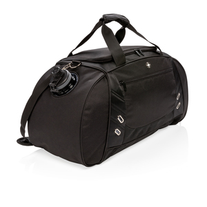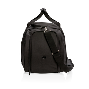Sportovní taška z polyesteru 600D a 1680D . Obsahuje mnoho prostorných oddílů se zavíráním na zip ve tvaru písmene U, boční oddíl na boty s větráním a boční přihrádku na lahev. Přední kapsa na zip s praktickou přihrádkou na chytrý telefon nebo jiné příslušenství na cesty. Nastavitelný ramenní popruh a dvojitá horní ucha pro pohodlí a různé možnosti nošení. Bez PVC.
