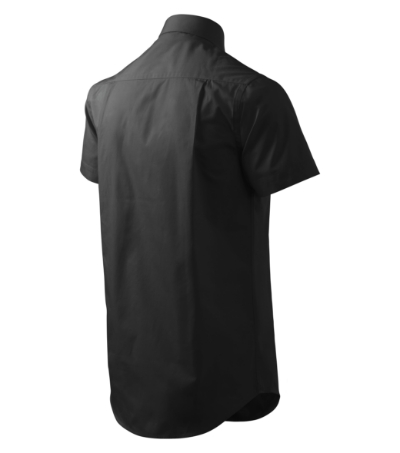 klasický střih s bočními švy, dvojité sedlo a záhyby na zadním dílu, dvoudílný košilový límec, přední kraje začištěny légou, nakládaná náprsní kapsa, knoflíčky v barvě materiálu (1 náhradní navíc)