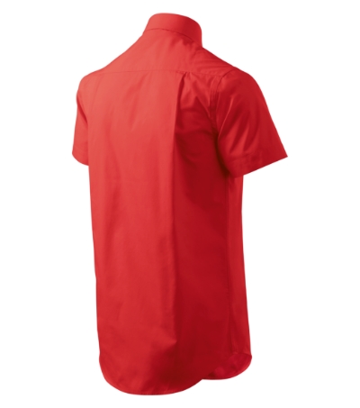 klasický střih s bočními švy, dvojité sedlo a záhyby na zadním dílu, dvoudílný košilový límec, přední kraje začištěny légou, nakládaná náprsní kapsa, knoflíčky v barvě materiálu (1 náhradní navíc)