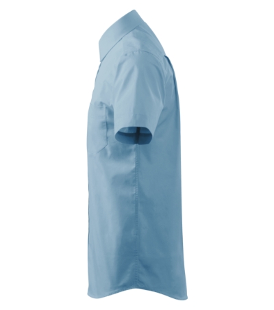 klasický střih s bočními švy, dvojité sedlo a záhyby na zadním dílu, dvoudílný košilový límec, přední kraje začištěny légou, nakládaná náprsní kapsa, knoflíčky v barvě materiálu (1 náhradní navíc)