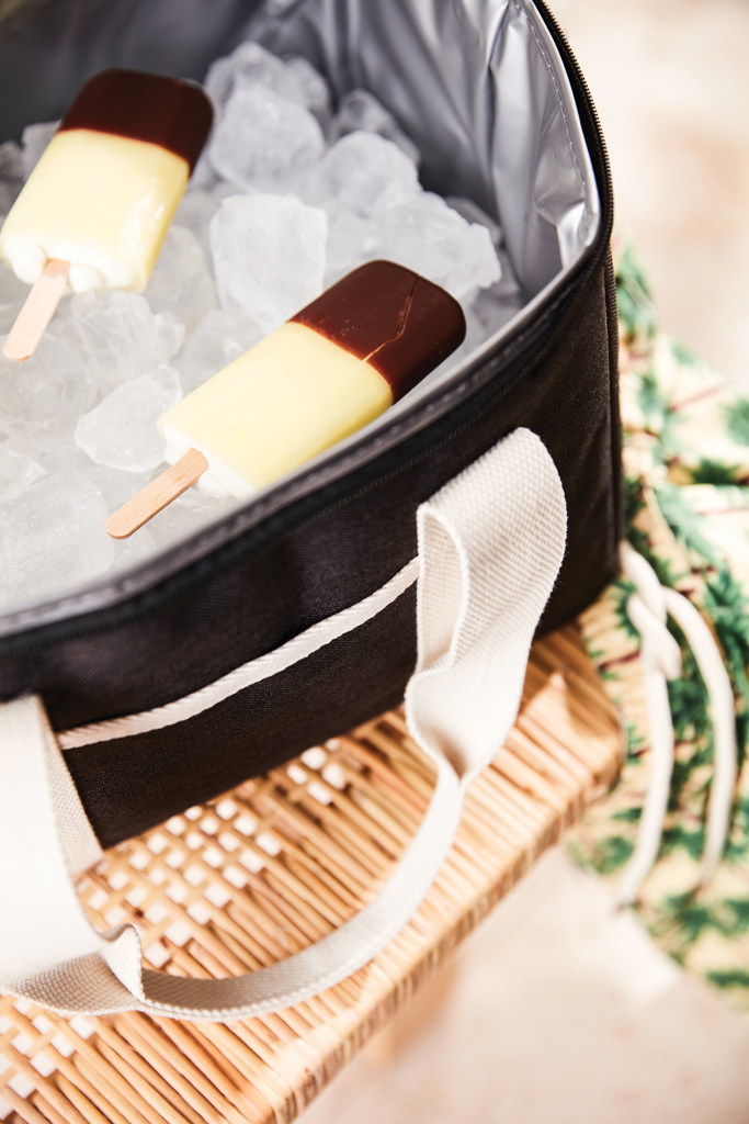 Dokonalý chladící koš, tón v tónu s detaily z imitace kůže a bavlny. Vyroben z 50 % z recyklovaného materiálu z PET lahví. Na vnější straně chladicího koše je malá přihrádka, kam lze uložit další nezbytnosti. Silná výplň z materiálu PEVA zajišťuje dlouhodobé udržení chladu. Po použití se snadno čistí a suší. Díky nastavitelnému ramennímu popruhu a dvojité rukojeti je možné ho nosit několika způsoby.