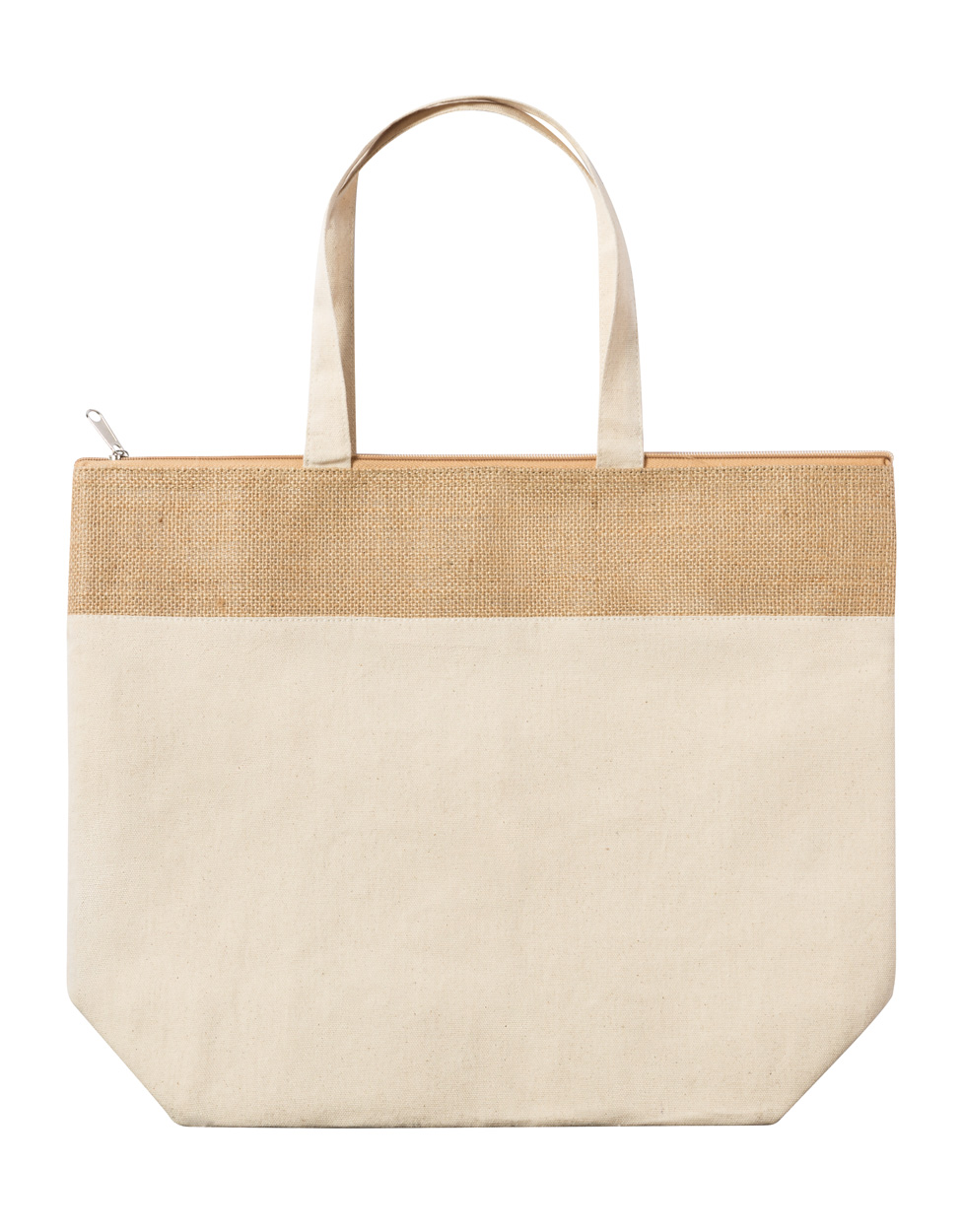 Chladící nákupní taška ze 100% bavlny a laminované juty s hliníkovou vložkou a přihrádkou na zip.