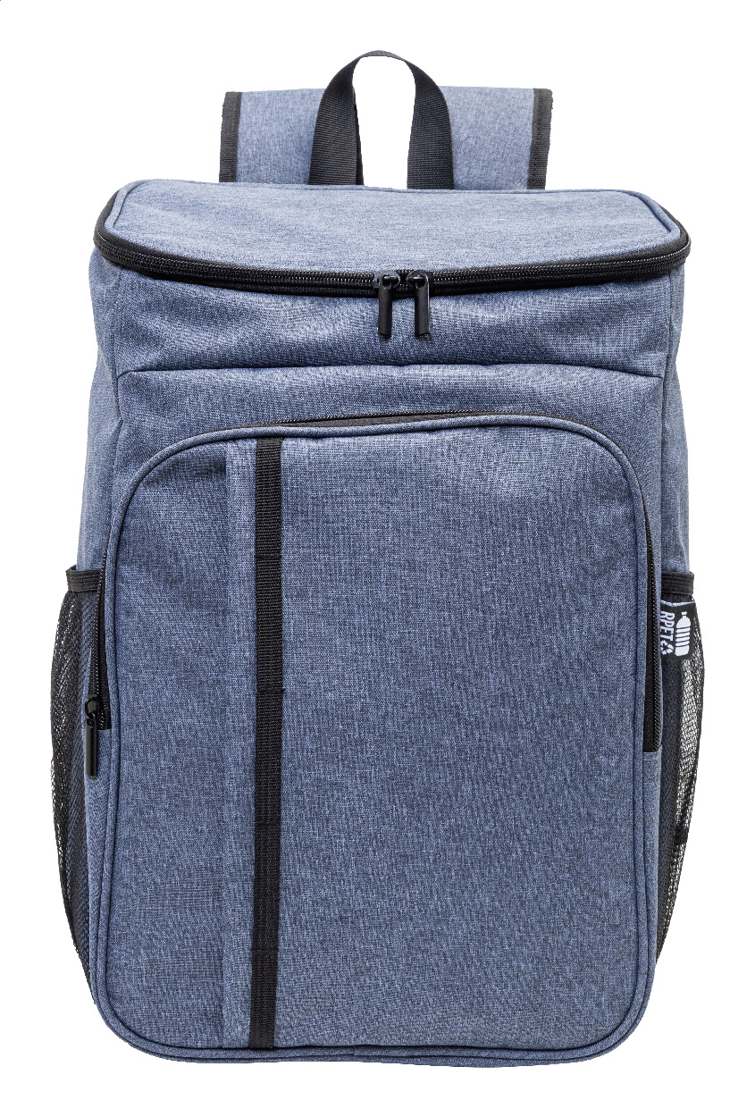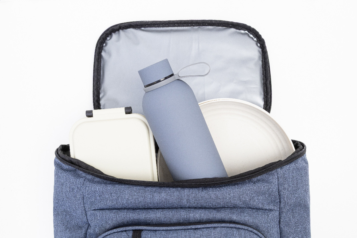 Chladicí piknikový batoh z RPET s přední kapsou na zip a chladicí přihrádkou na zip s PEVA výplní. S bočními síťovanými kapsami, polstrovanými zády a ramenními popruhy. Včetně nádobí z PP a nerezové oceli pro 2 osoby: 2 talíře, 2 hrnky, 2 vidličky, 2 lžíce a 2 nože. 600D RPET polyester s výrazným štítkem RPET.