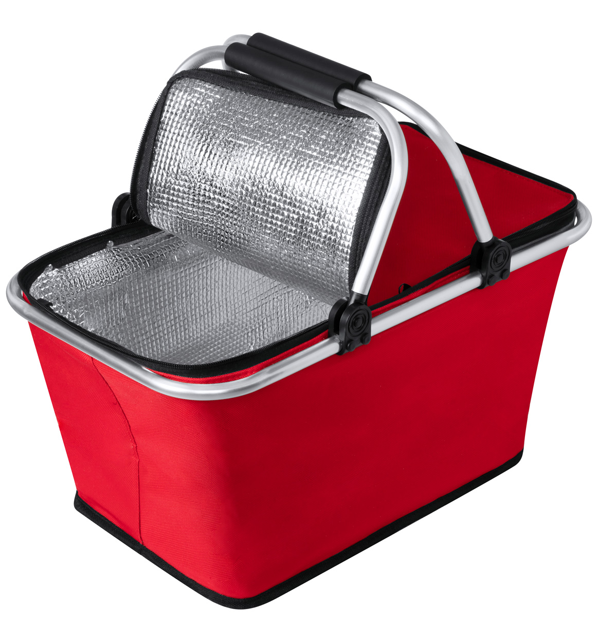 Skládací chladicí piknikový koš s hliníkovým rámem a EVA polstrovanými držadly, polyester 600D.