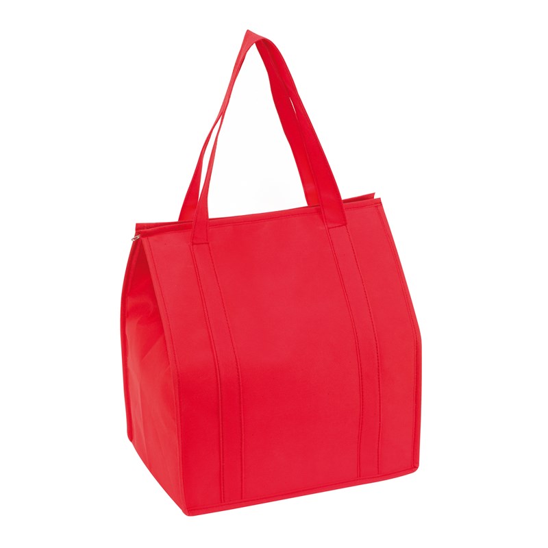 Chladicí taška ve tvaru nákupní tašky: izolovaná hlavní přihrádka na zip, 2 ucha na přenášení.
