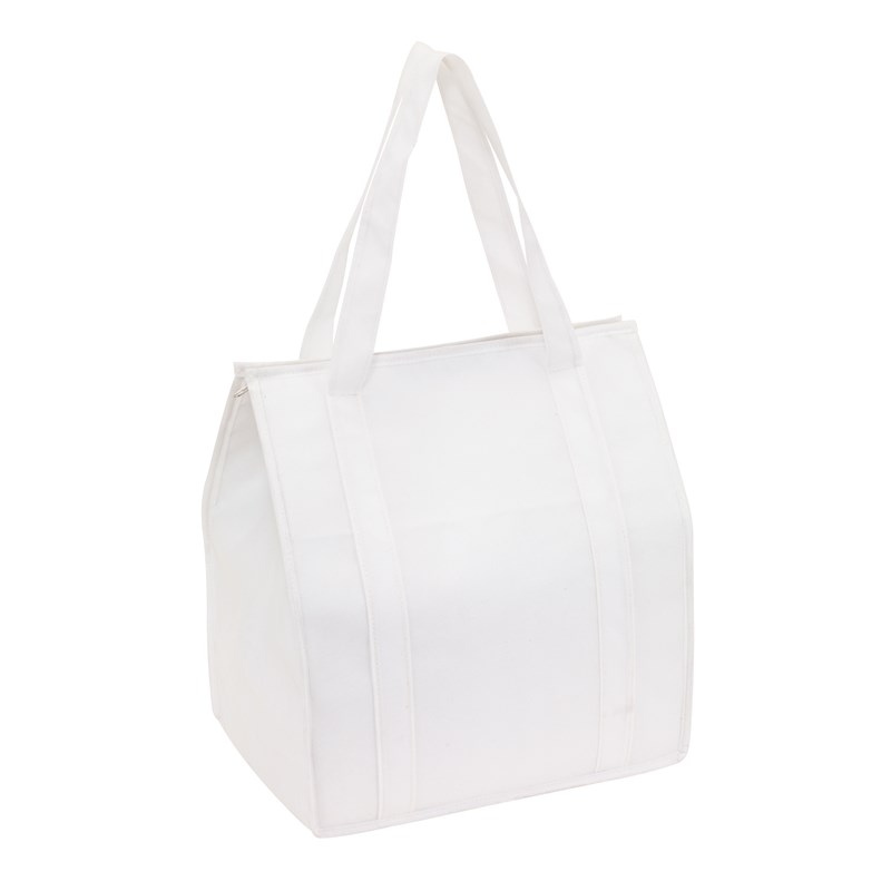 Chladicí taška ve tvaru nákupní tašky: izolovaná hlavní přihrádka na zip, 2 ucha na přenášení.