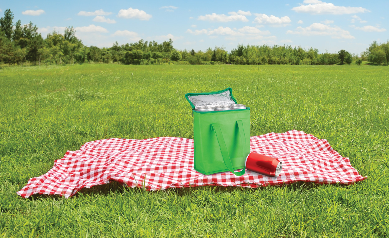 Chladící taška z netkané textilie na zip s hliníkovou vsadkou uvnitř. Pro 6ks plechovek 0,33 l nebo 3ks 0,5 l.