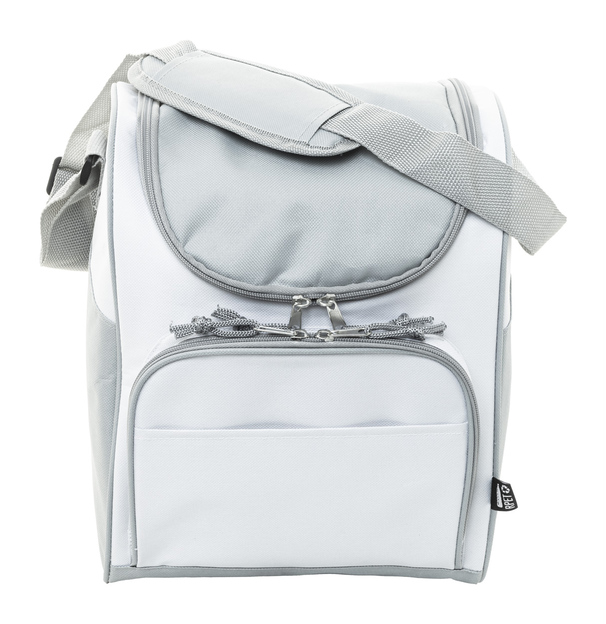 Chladicí taška RPET s hliníkovým polstrováním. Se 2 přihrádkami na zip, malou přední kapsou a nastavitelným ramenním popruhem. 600D RPET polyester s výrazným štítkem RPET.