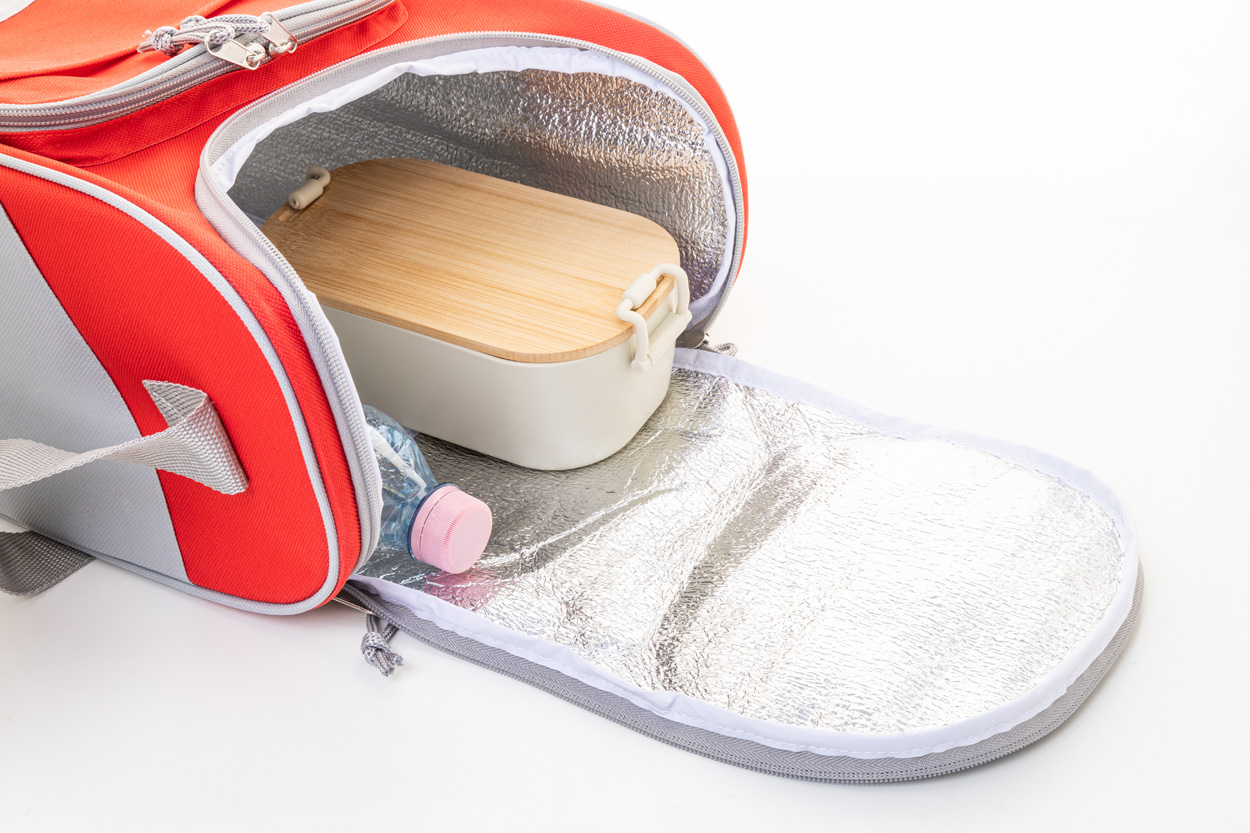 Chladicí taška RPET s hliníkovým polstrováním. Se 2 přihrádkami na zip, malou přední kapsou a nastavitelným ramenním popruhem. 600D RPET polyester s výrazným štítkem RPET.