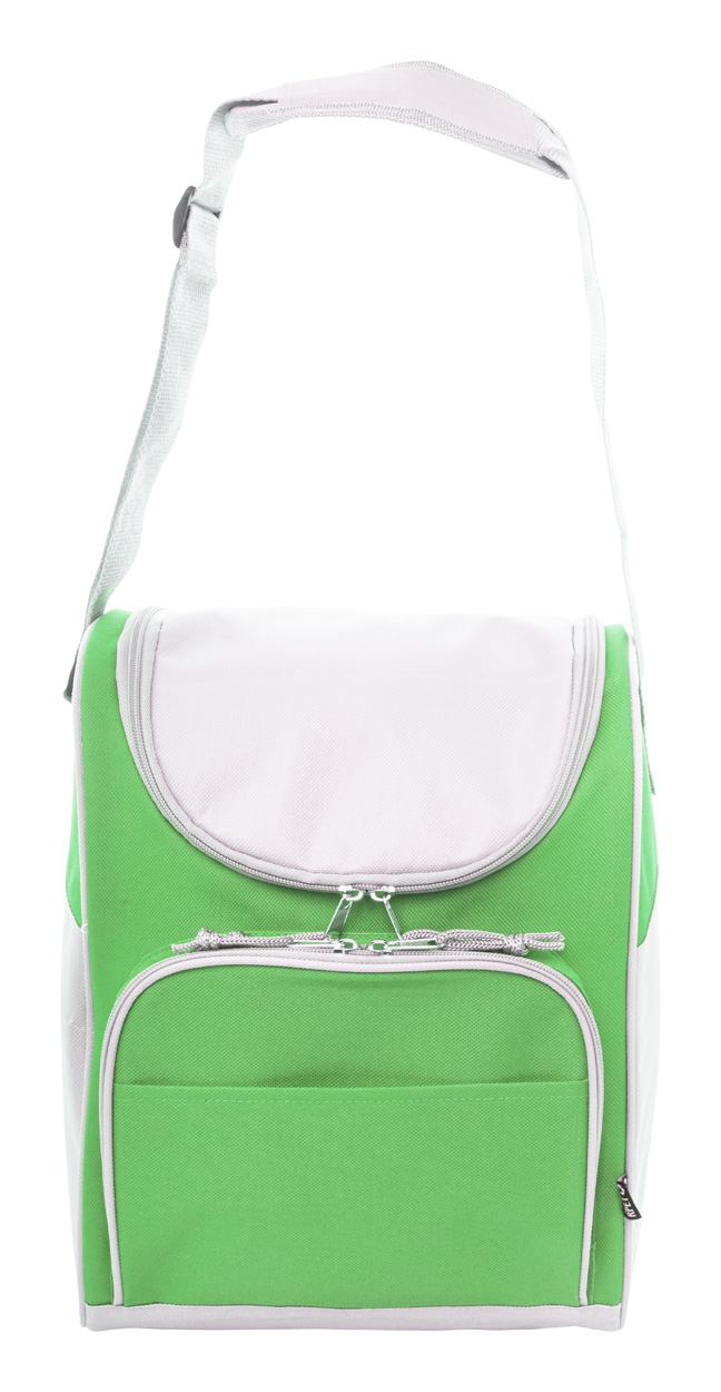 Chladicí taška RPET s hliníkovým polstrováním. Se 2 přihrádkami na zip, malou přední kapsou a nastavitelným ramenním popruhem. 600D RPET polyester s výrazným štítkem RPET.