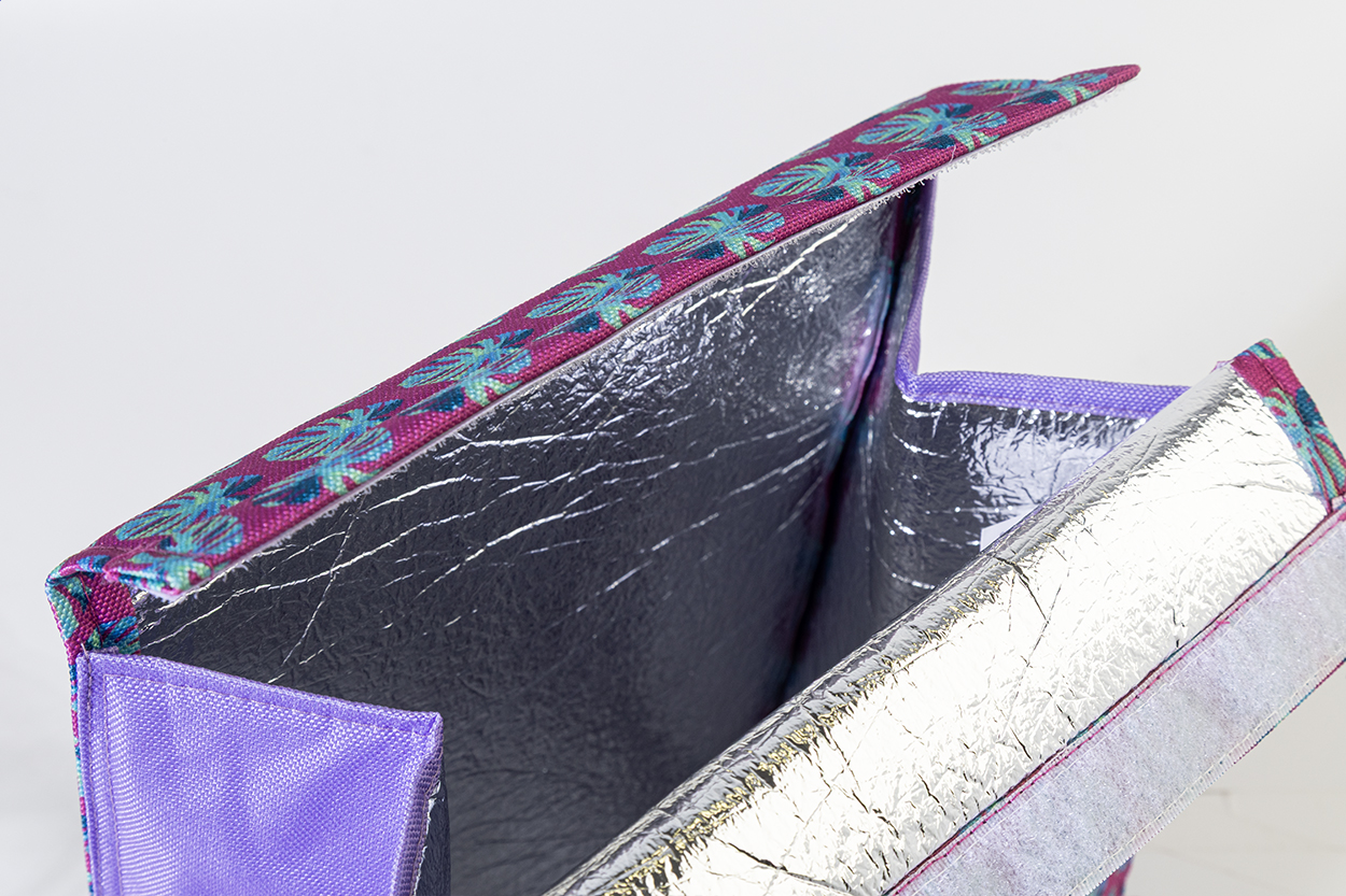 Chladicí taška na oběd z 600D RPET polyesteru na zakázku s hliníkovou výplní a zapínáním na suchý zip. S celoplošně potištěnou sublimační grafikou a výraznou RPET etiketou. Cena nezahrnuje tiskovou přípravu. Min. mn.: 25 ks.