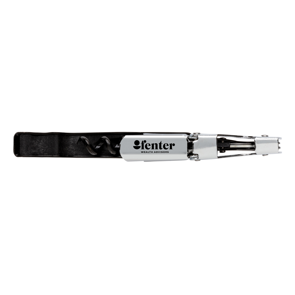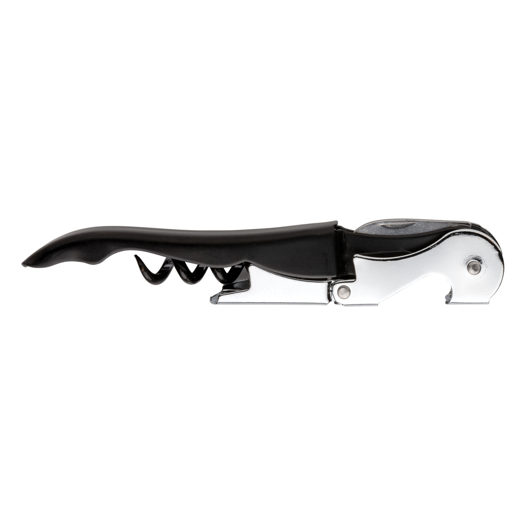Kvalitní klasická číšnická vývrtka s nožem na folii, dvoufázovou vývrtkou a otvírákem. Baleno v luxusní krabičce.