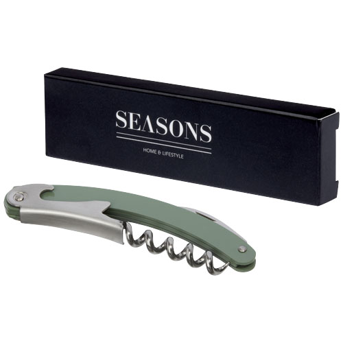 Nerezový číšnický otvírák lahví s řezačkou fólií a barevným tělem.