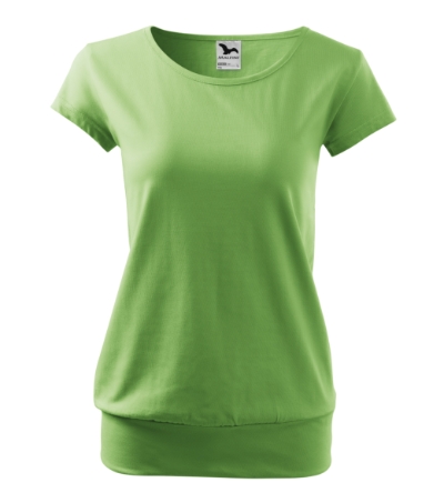 volný střih s bočními švy, široký lem dolního kraje z vrchového materiálu, průkrčník lemován vrchovým materiálem, zpevnění ramenních švů páskou, rukávy kratší délky, silikonová úprava