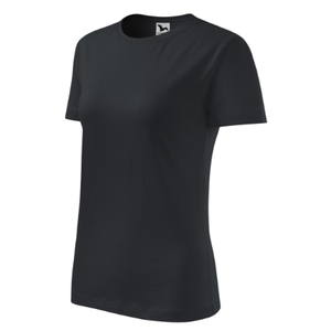 lehce vypasovaný střih s bočními švy, úzký lem průkrčníku z žebrového úpletu 1:1, vnitřní část průkrčníku začištěna páskou z vrchového materiálu, zpevnění ramenních švů páskou