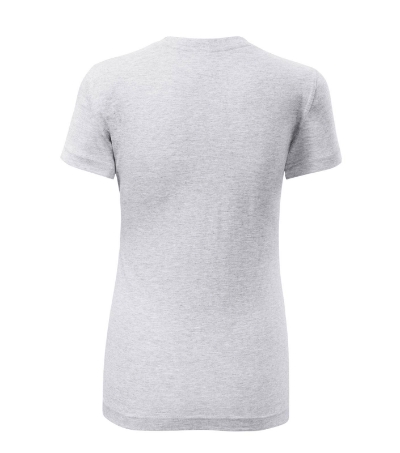 lehce vypasovaný střih s bočními švy, úzký lem průkrčníku z žebrového úpletu 1:1, vnitřní část průkrčníku začištěna páskou z vrchového materiálu, zpevnění ramenních švů páskou