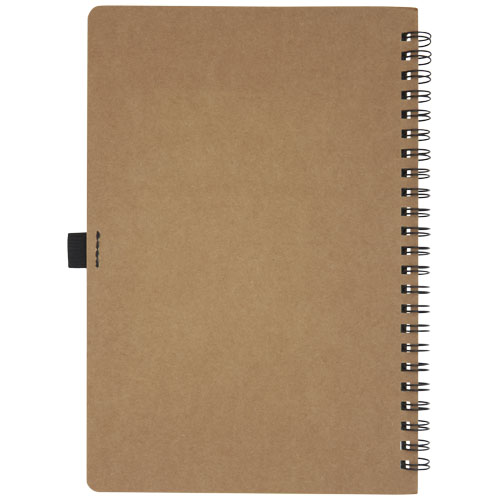 Poznámkový blok o velikosti A5 s obalem z recyklované lepenky, kroužkovou vazbou a očkem pro pero. Obsahuje 70 linkovaných listů kamenného papíru 60 g/m². Kamenný papír je vyroben 100% bez použití stromů a výrobní proces spotřebovává méně energie ve srovnání s recyklovaným nebo novým papírem z celulózy. Papír je odolný proti vodě a roztržení a má přirozenou bílou barvu (bez nutnosti bělení).