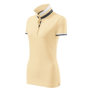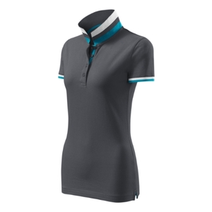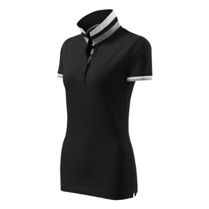 lehce vypasovaný střih s bočními švy, límeček a lemy rukávů z žebrového úpletu 1:1, spodní část límečku a lemy rukávů s kontrastními pruhy, úzká léga s 4 knoflíčky v barvě materiálu, rozparky v bočních švech a spodní léga s kontrastní páskou, vnitřní průkrčník začištěn kontrastní páskou, zpevnění ramenních švů páskou