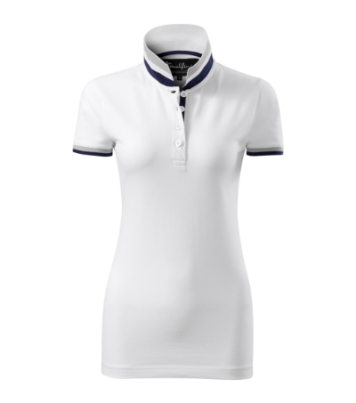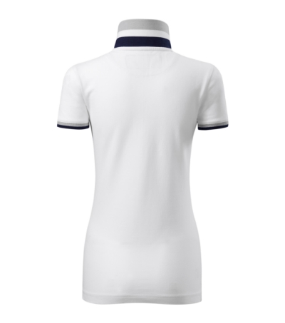 lehce vypasovaný střih s bočními švy, límeček a lemy rukávů z žebrového úpletu 1:1, spodní část límečku a lemy rukávů s kontrastními pruhy, úzká léga s 4 knoflíčky v barvě materiálu, rozparky v bočních švech a spodní léga s kontrastní páskou, vnitřní průkrčník začištěn kontrastní páskou, zpevnění ramenních švů páskou