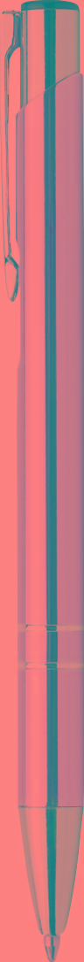 Kovová kuličková propiska v několika barvách s chromovými doplňky (špička, tlačítko, spona a dva designové proužky na těle propisky). Náplň pera je modrá.