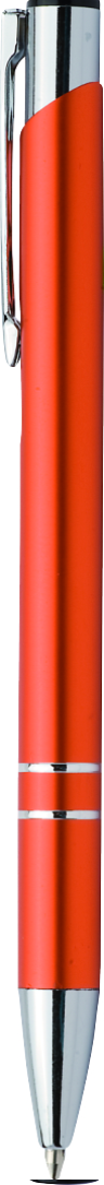 Kovová kuličková propiska v několika barvách s chromovými doplňky (špička, tlačítko, spona a dva designové proužky na těle propisky). Náplň pera je modrá.