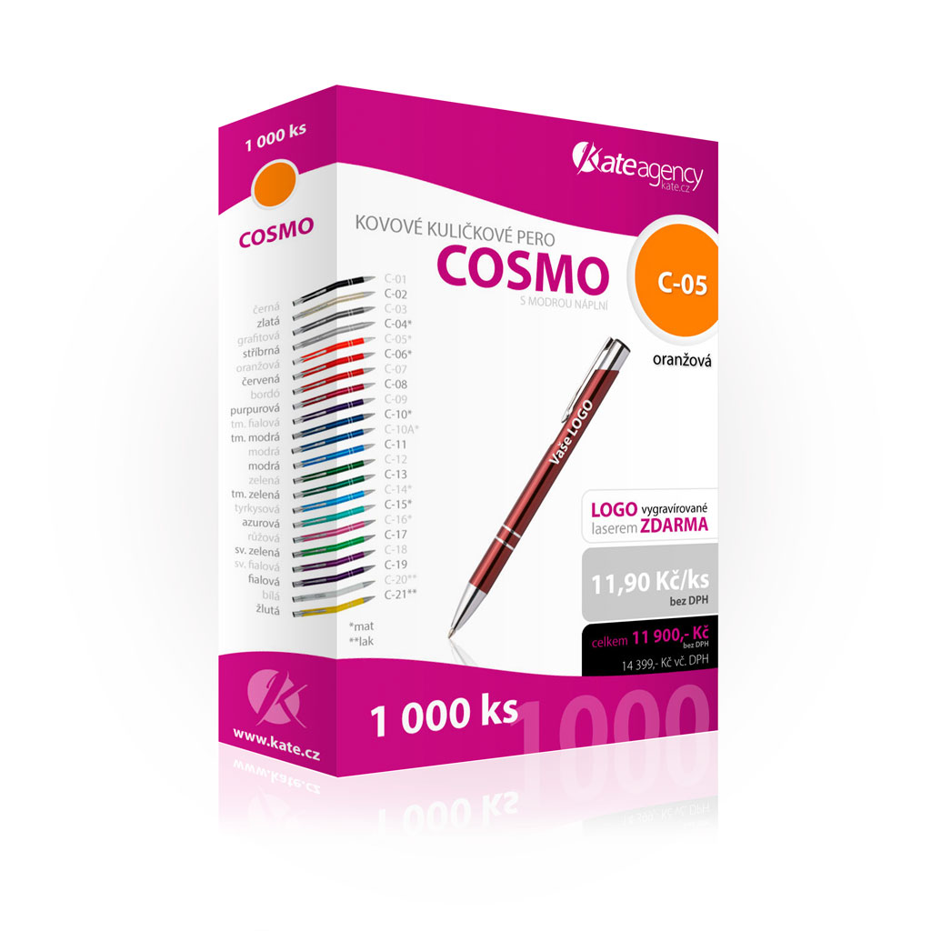Možný odběr propisky COSMO i bez brandingu za zvýhodněnou cenu, odběr ihned na skladě KATE agency Brno - Šumavská 15.