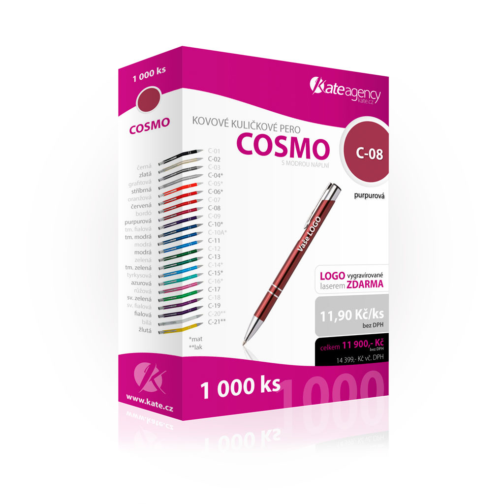 Možný odběr propisky COSMO i bez brandingu za zvýhodněnou cenu, odběr ihned na skladě KATE agency Brno - Šumavská 15.