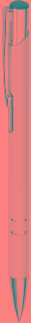 Kovová kuličková propiska v několika barvách s chromovými doplňky (špička, tlačítko, spona a dva designové proužky na těle propisky). Náplň pera je modrá.