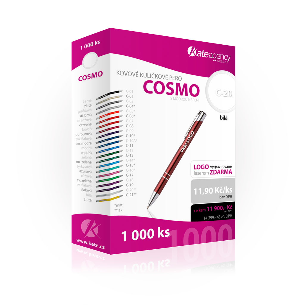 Možný odběr propisky COSMO i bez brandingu za zvýhodněnou cenu, odběr ihned na skladě KATE agency Brno - Šumavská 15.