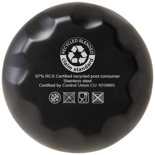 Vakuově izolovaná láhev z recyklované nerezové oceli s certifikací RCS s ikonickým designem, která udrží nápoje horké nebo studené po několik hodin. Díky základně, která se vejde do většiny držáků nápojů, je tato elegantní láhev na vodu perfektním reklamním předmětem. Testováno a schváleno podle německé legislativy pro bezpečnost potravin (LFGB), testováno na obsah ftalátů podle předpisů REACH. Objem je 500 ml. Dodává se v dárkové krabičce z recyklované lepenky.