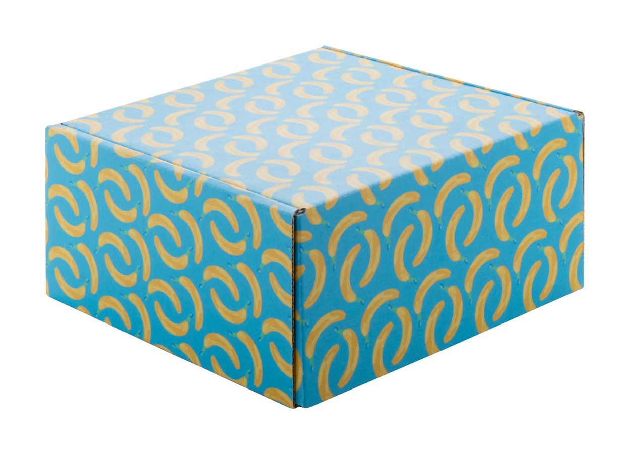 Plnobarevně potištěná čtvercová poštovní dárková krabička se samolepící páskou z vlnité lepenky na zakázku. Dodáváno rozložené. Cena zahrnuje digitální tisk, nezahrnuje tiskovou přípravu. Min. mn.: 50 ks.