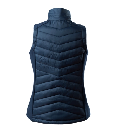 kombinace prošívaného a softshellového materiálu, střih tvarovaný bočními díly, celopropínací spirálový zip s krytkou brady, boční kapsy se spirálovým zipem, vnitřní náprsní kapsa na zip, tvarovaný a mírně prodloužený zadní díl , vstup pro branding v podšívce zadního dílu