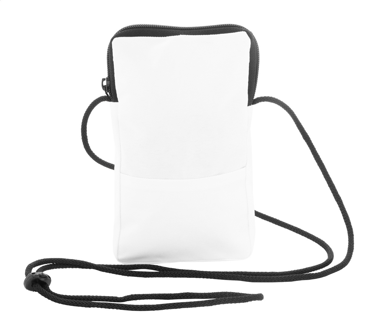 Na zakázku vyrobená kompaktní crossbody taštička z 600D RPET polyesteru s nastavitelným popruhem, přihrádkou na zip a přední kapsou. Ideální pro nošení mobilního telefonu nebo jiných drobných cenností. S celoplošně tištěnou sublimační grafikou a výrazným štítkem RPET, cena nezahrnuje tiskovou přípravu. Min. mn.: 25 ks.