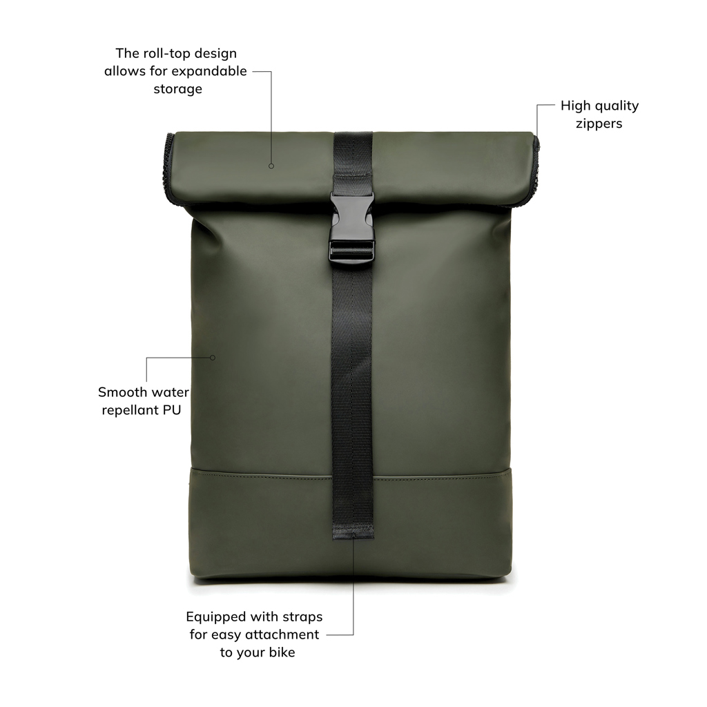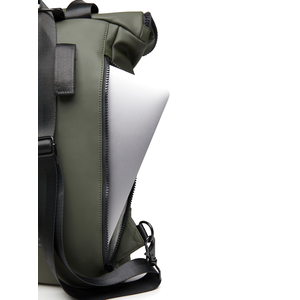Elegantní, moderní brašna z pružné veganské/nubukové PU kůže. Toto univerzální provedení lze nosit jako batoh nebo jako tašku – můžete pohodlně jezdit do práce s brašnou na zádech a pak si ji přehodit přes rameno, když vyrazíte na oběd. Chytrá polstrovaná kapsa na notebook je ideální pro uložení vašich zařízení. Tuto brašnu můžete také připevnit k rámu kola. Dokonalá kombinace praktičnosti a stylu!