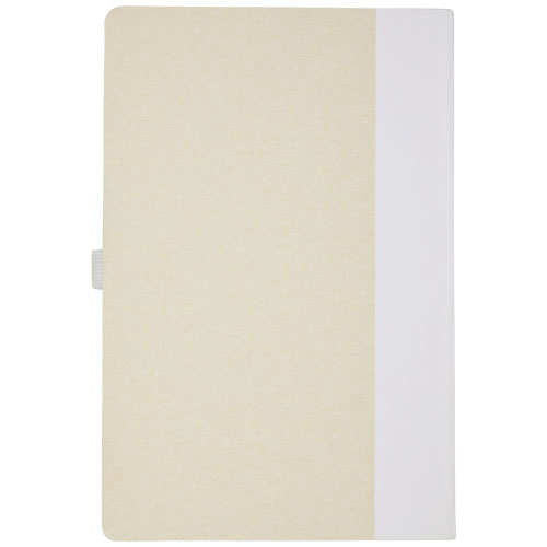 Sada referenčního zápisníku velikosti A5 a kuličkového pera. Zápisník obsahuje 80 linkovaných listů (80 g/m²) vyrobených z recyklovaných kartonů od mléka (až ze 70 %), hřbet z barevného papíru a poutko na pero. V poutku na pero je kuličkové pero s klikacím mechanismem v barvě zápisníku. Pero má tělo vyrobené ze stejného recyklovaného kartonu od mléka a knoflík, klip a hrot jsou vyrobeny z barevného plastu PLA. Uvnitř pera je černá náplň. Použité krabice od mléka se sbírají, třídí, zpracovávají a mění na papír, čímž se odpad skutečně proměňuje v něco užitečného.
