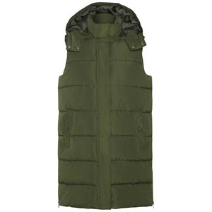 Polstrovaná vesta s odnímatelnou kapucí. Vysoký límec. Přední zapínání na zip krytý chlopní. Dvě kapsy se zapínáním na druky. Boční otvory se zipy. Vnitřní hrudní přístup. Voděodolné.