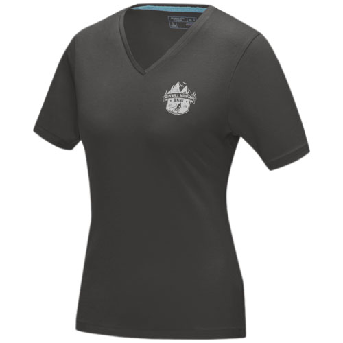The Kawartha short sleeve women's organic V-neck t-shirt is a stylish and sustainable choice. Made from 95% organic cotton, with a fabric weight of 200 g/m², this t-shirt is not only good for the environment, but also soft and comfortable to wear. The 5% elastane ensures a soft and stretchy fit. With its V-neck and short sleeves this t-shirt is both sustainable and modern.