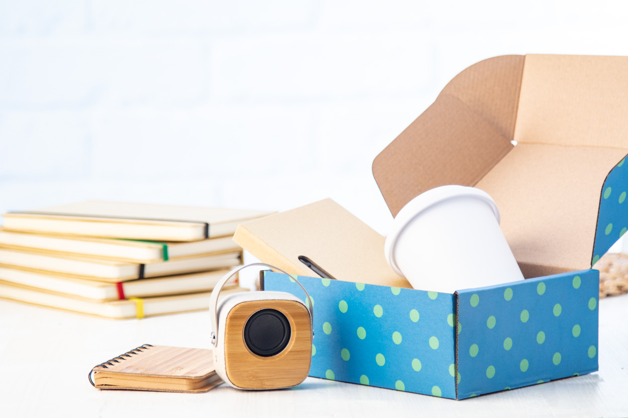 Plnobarevně potištěná dárková krabice na zakázku z vlnité lepenky se samolepícím proužkem. Dodáváno rozložené. Min. mn.: 50 ks.