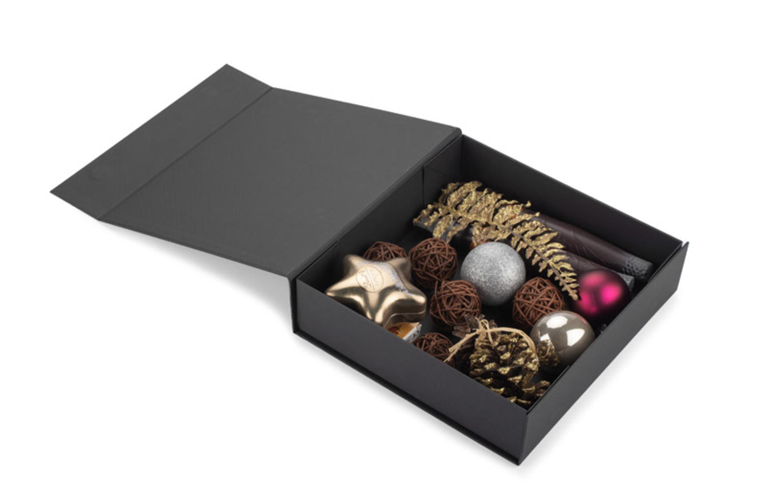 Elegantní krabice MAGIC "M" je ideální základnou pro vytvoření vlastního dárkového setu. Stačí přidat vybrané produkty a snadno vytvoříte originální dárkový balíček. Je skládací, zavírá se na magnet a rozkládá se naplocho. Můžete využít možnosti označení, aby byl dárek výjimečný. Gadgety a výplň zobrazené na obrázku nejsou součástí balení.