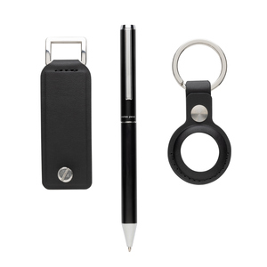 Dokonalé organizační trio: elegantní Swiss Peak Tula certifikovaný organizér klíčů RCS, praktický držák AirTag a pero z recyklovaného hliníku. Organizér klíčů udržuje vaše klíče pod kontrolou (maximálně 4 klíče), zatímco držák AirTag zajistí přehled o vašich cennostech. Vyrobeno z recyklovaných materiálů certifikovaných podle RCS. Certifikace RCS zajišťuje garanci použití recyklovaného materiálu díky transparentnímu přehledu nad dodavatelským řetězcem. Tento produkt obsahuje 7 % recyklovaného PU s certifikací RCS a 8 % recyklovaného hliníku s certifikací RCS.