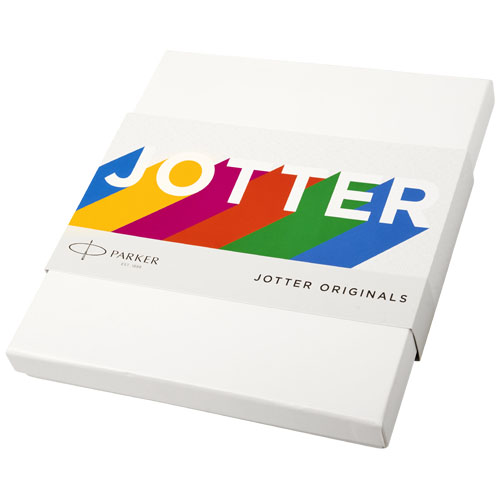 Dárková sada poznámkového bloku a pera s exkluzivním designem. Každé pero Parker Jotter lze kombinovat se zápisníkem JournalBooks Classic s tvrdou obálkou (106181) nebo vázaným poznámkovým blokem Nova (107395). Pero a zápisník nejsou součástí tohoto produktu a je nutné je zakoupit samostatně.