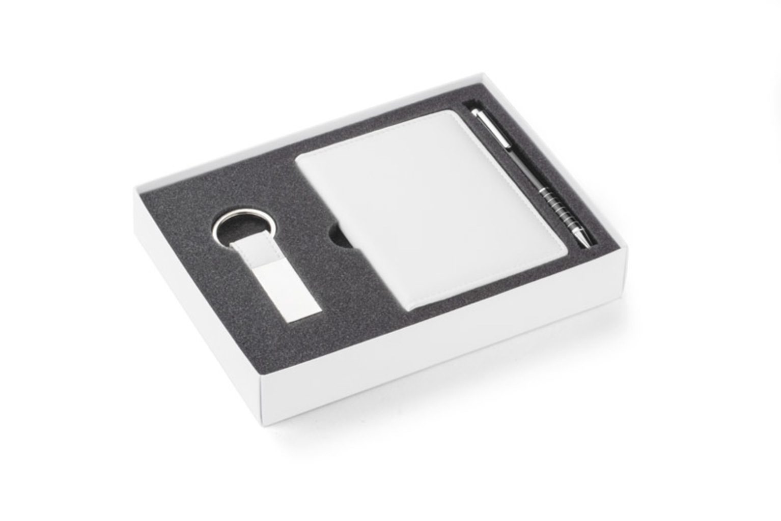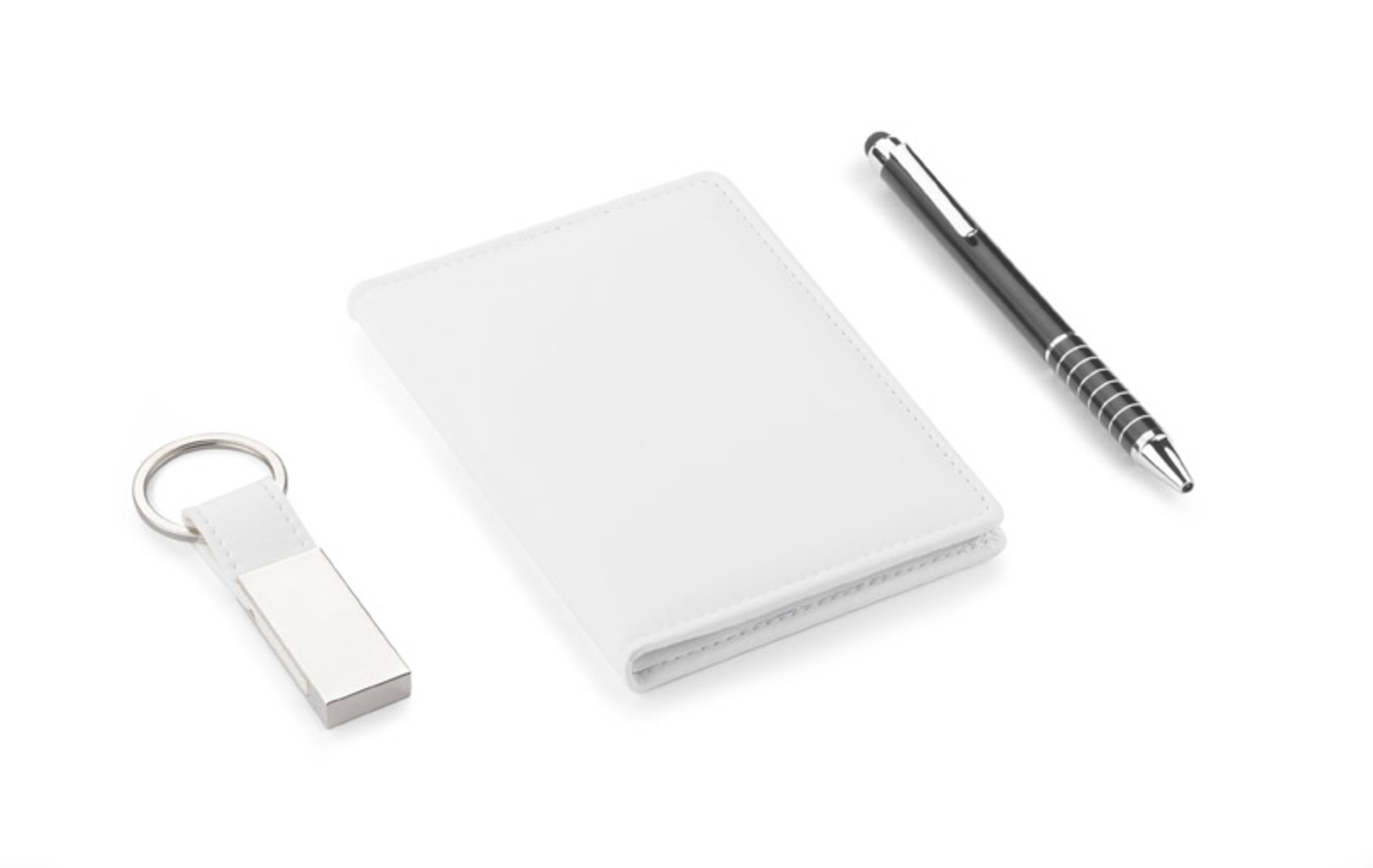 Komplet CASSI je vyrobený z ekologické kůže. Skládá se z přívěsku a pouzdra na dokumenty, které jsou zabalené do krabičky vyrobené z papíru. Barva krabičky je stejná jako vnitřní strana kompletu, díky čemuž tvoří soudržný celek.