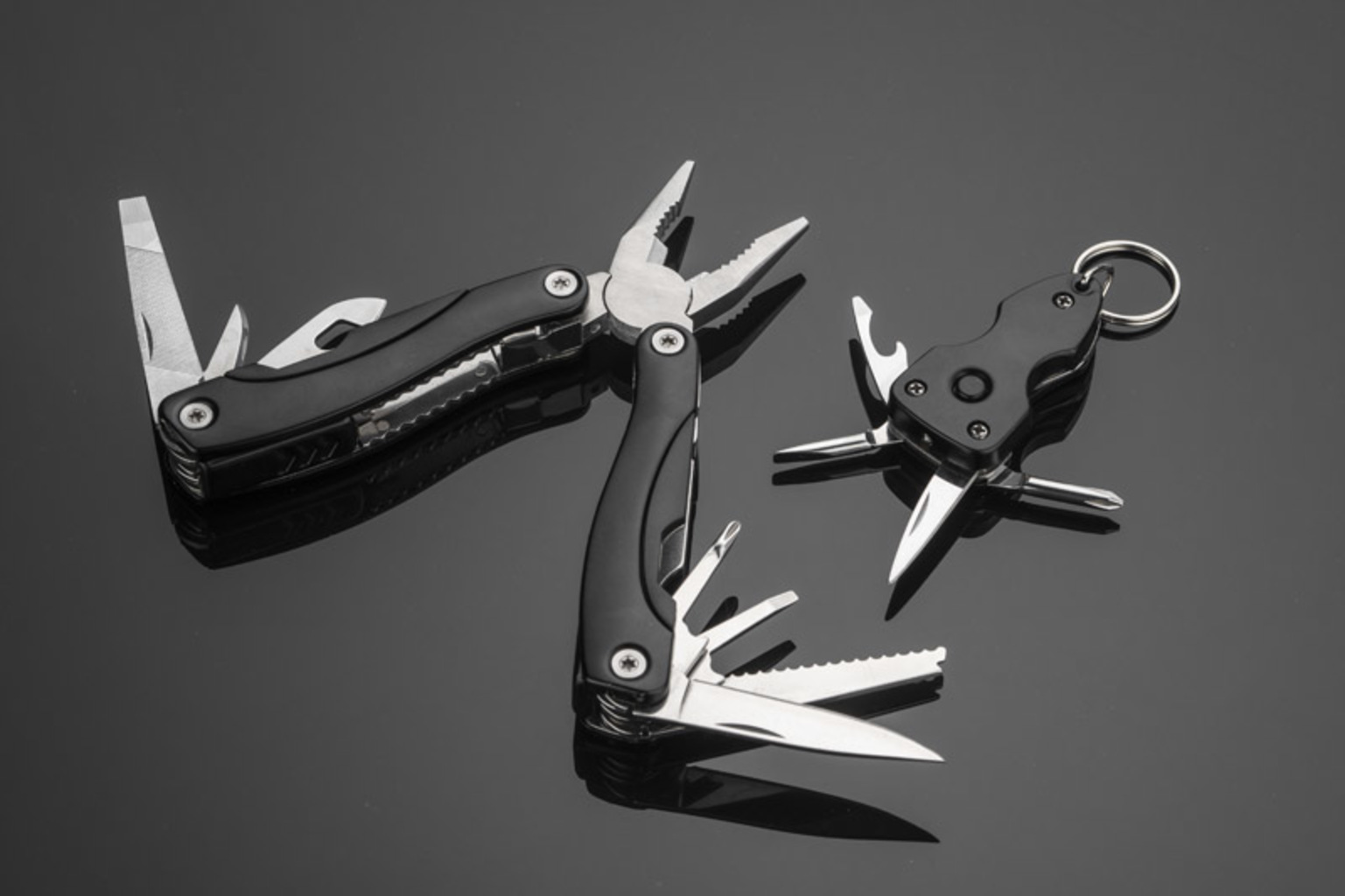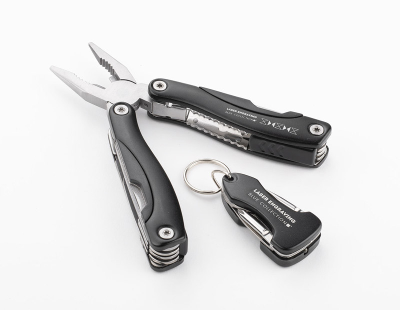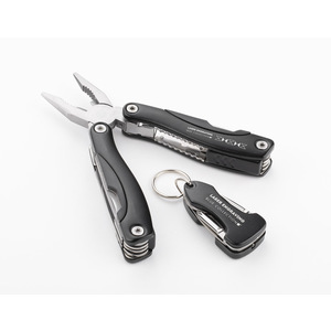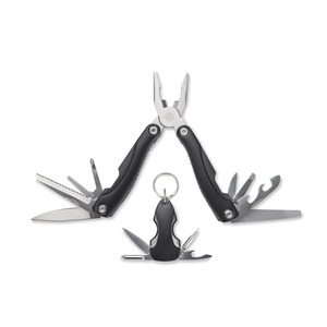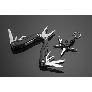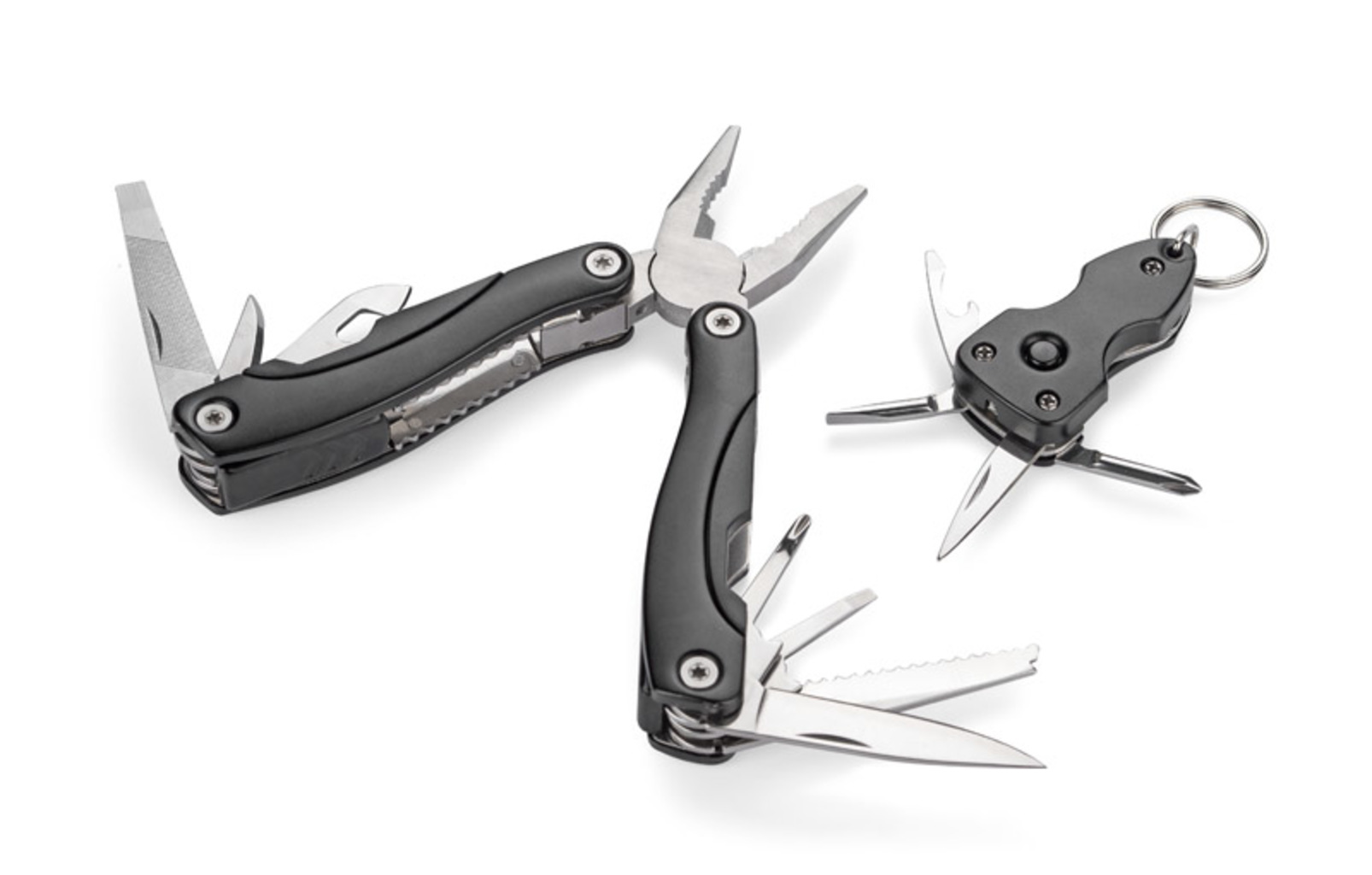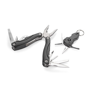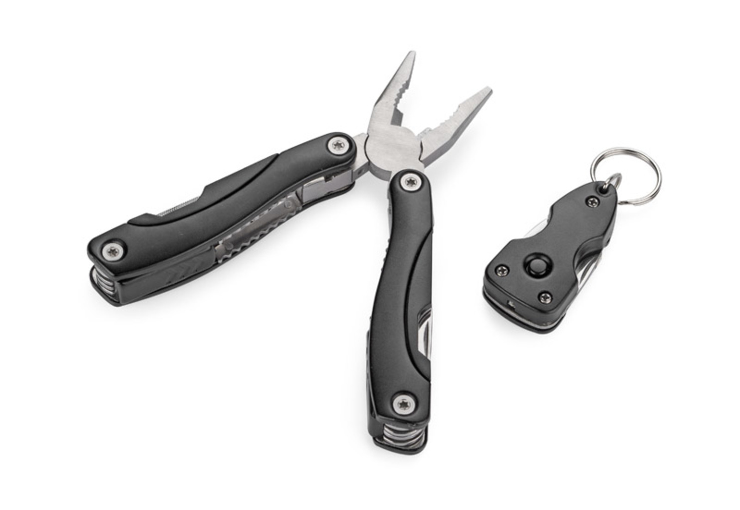 TOOL je sada, která obsahuje multifunkční nástroj a klíčenkový multifunkční nástroj. Funkce nástroje: kombinačky, řezák, nůž s hladkým ostřím, pila, křížový a rovný šroubovák, pilník, otvírák lahví a konzerv. Vybavená zámkem blokujícím všechny prvky. Funkce přívěšku: nůž, křížový a rovný šroubovák, otvírák lahví a konzerv, baterka. Obě pomůcky jsou zabalené do ekologické lepenkové krabice. Rozměry multifunkčního nástroje: 158 x 68 x 23 m, rozměry přívěšku: 30 x 60 x 18 mm