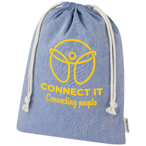 Dárková taška z recyklované bavlny certifikované GRS s bavlněným šňůrkovým uzávěrem. Ideální pro dávání dárků nebo ukládání předmětů. Velikost: 30 x 42 cm.